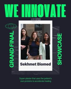 Congratulations to Dr Magdalene Ho, Shani Katz and Sara Flod from the Almquist Lab, who took second place at Imperial’s WE Innovate Grand Final for their startup Sekhmet Biomed, which is developing ‘super-plasters’ that harvest the patient’s own therapeutic proteins to accelerate wound healing.