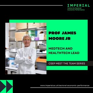 I was fortunate to be invited to lead the analysis of the UK MedTech sector back in 2020.  That work was generously supported by Lord Sainsbury.  I had to climb quickly up the learning curve on economics!  Along with others at Imperial that did reports on the BioPharma and Telecomms sectors, those projects led to the establishment of CSEP.  I am intrigued by the vision to have technical and business experts collaborate to improve productivity and societal benefit.  The MedTech activity has led to the formulation of a strategy to grow the entire HealthTech* sector, written in collaboration with the Association of British HealthTech Industries.  That is the first strategy document produced by CSEP, and I look forward to seeing more strategies being developed for other sectors.