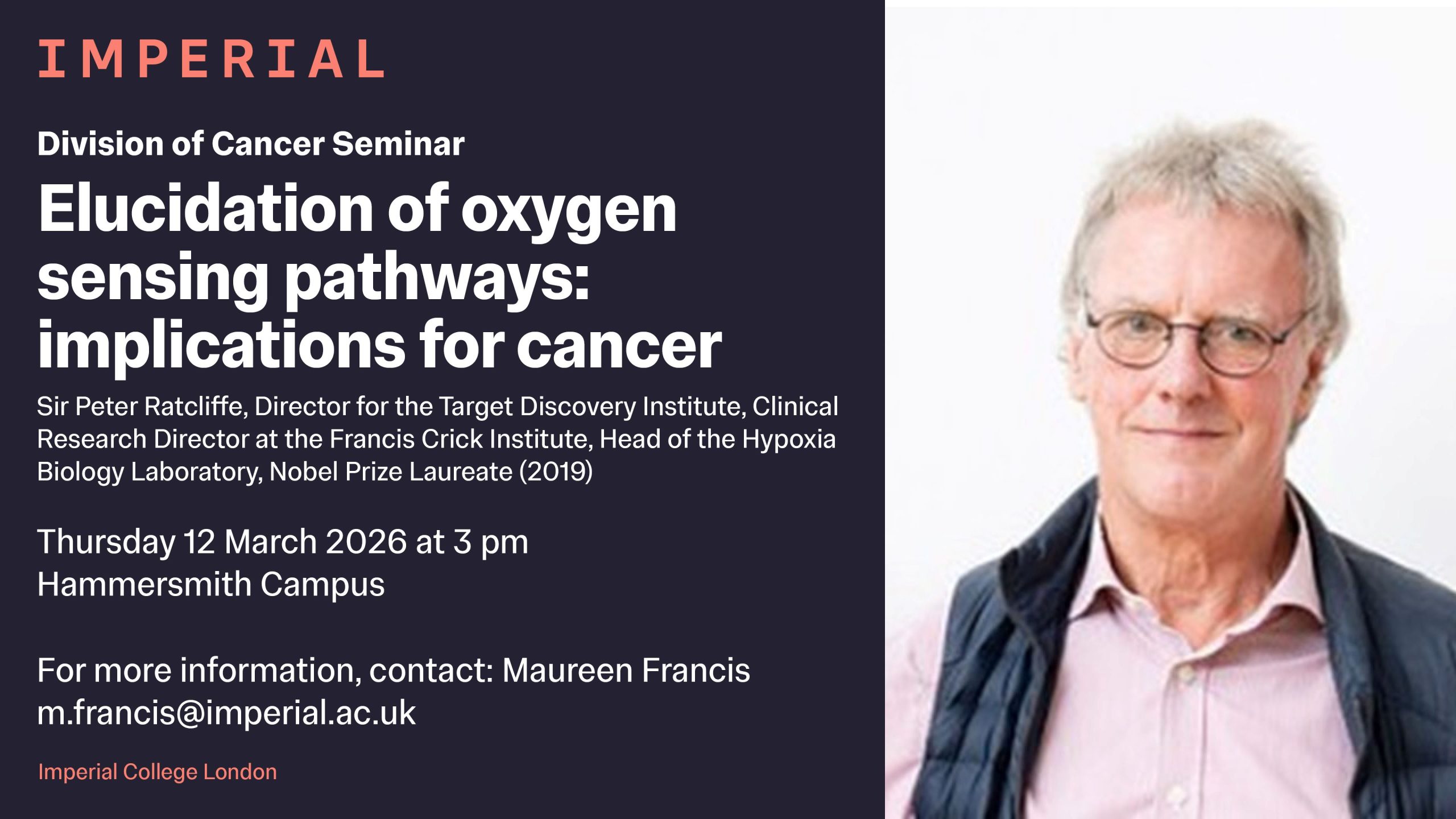 College Events Doctoral Students Master's Students Research Staff Division of Cancer Seminar (12 March 2026) 5 March 2026 Elucidation of oxygen sensing pathways: implications for cancer